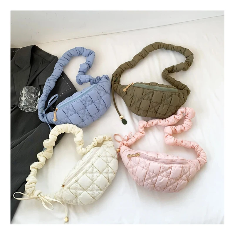Fashion Nylon Puffy Quilted Padding Shoulder Chest Crossbody Sling Bags Puffer Fanny Pack Waist Bag For Women