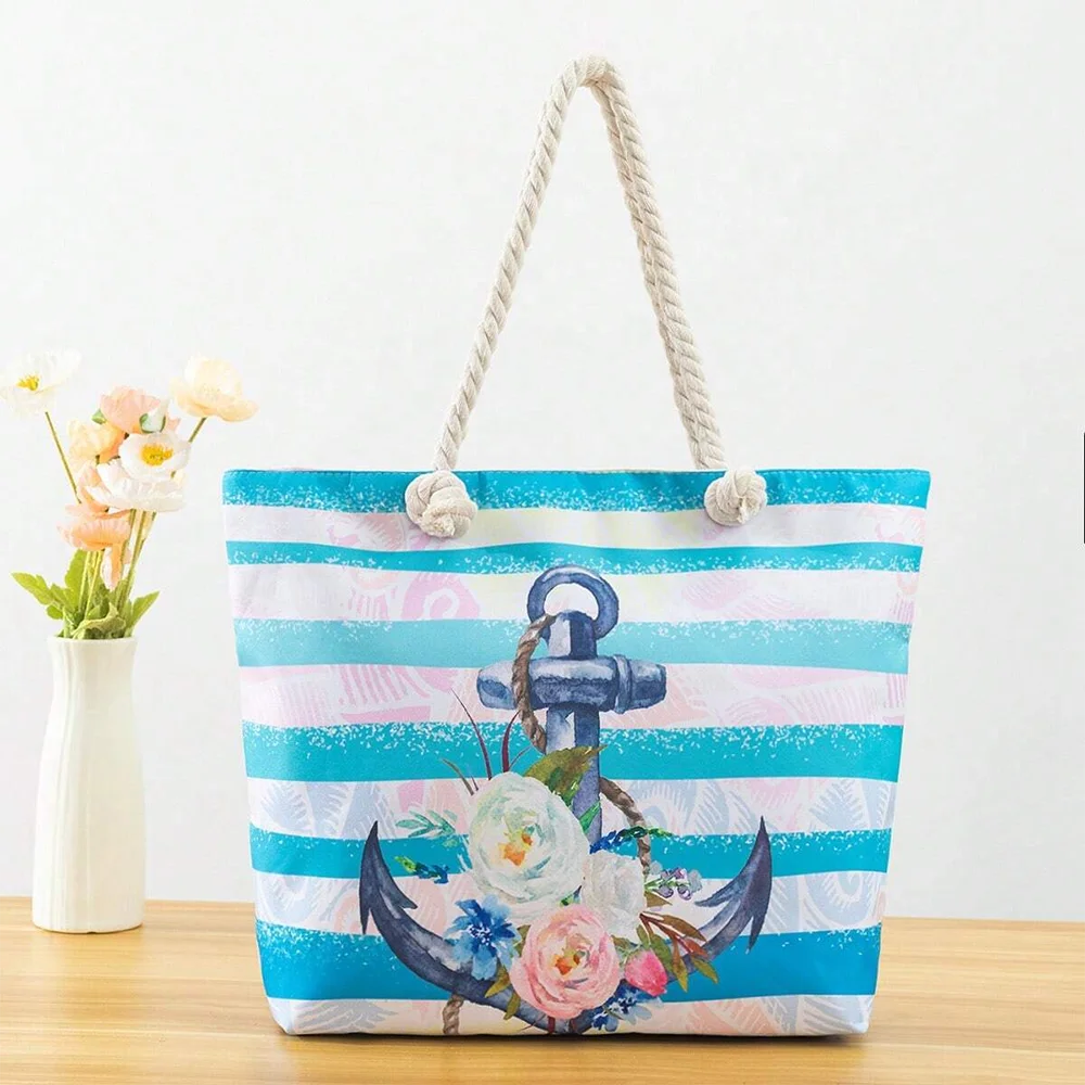 Wholesale Summer Fashion Printed Ladies Women Seaside Hawaii Shoulder Shopping Bag Canvas Gifts Travel Beach Tote Bag