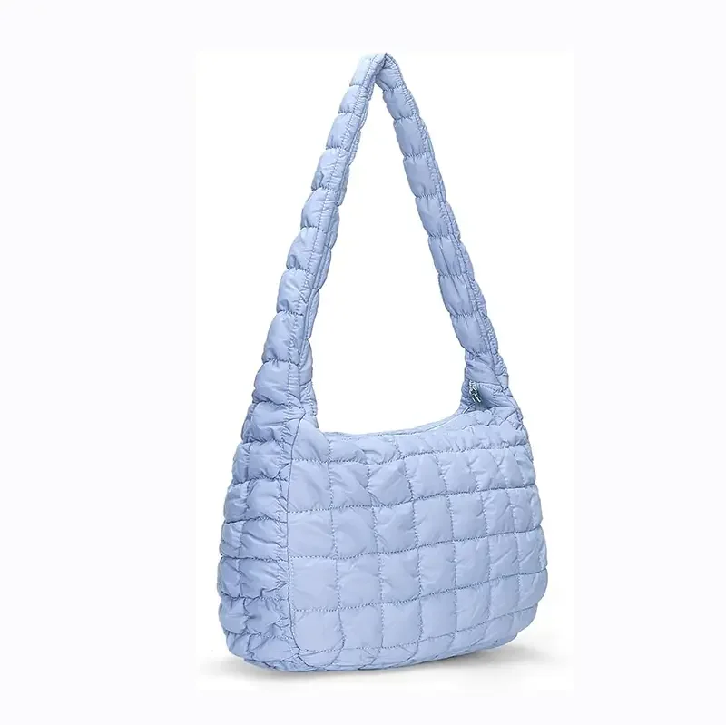 Logo Large Capacity Ladies Casual Armpit Handbag Puffy Nylon Quilted Puffer Tote Bag
