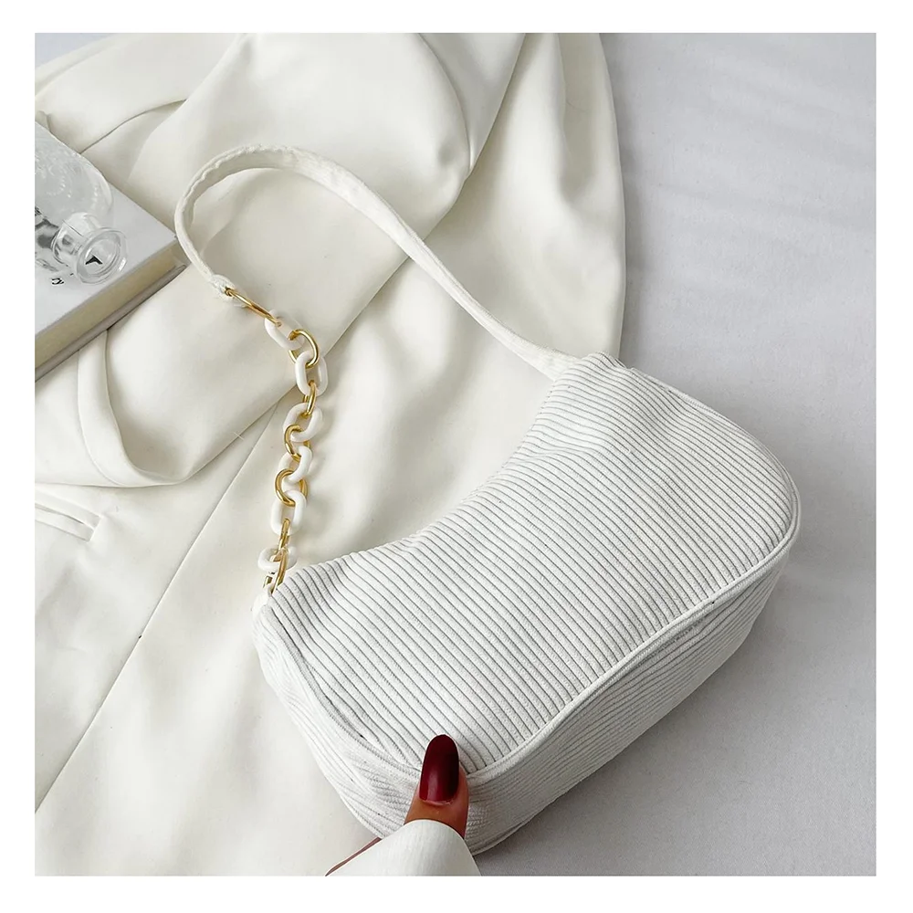 Customized Solid Color Minimalist Corduroy Chain Hobo Bag Zipper Preppy Ladies Underarm Tote Handbag