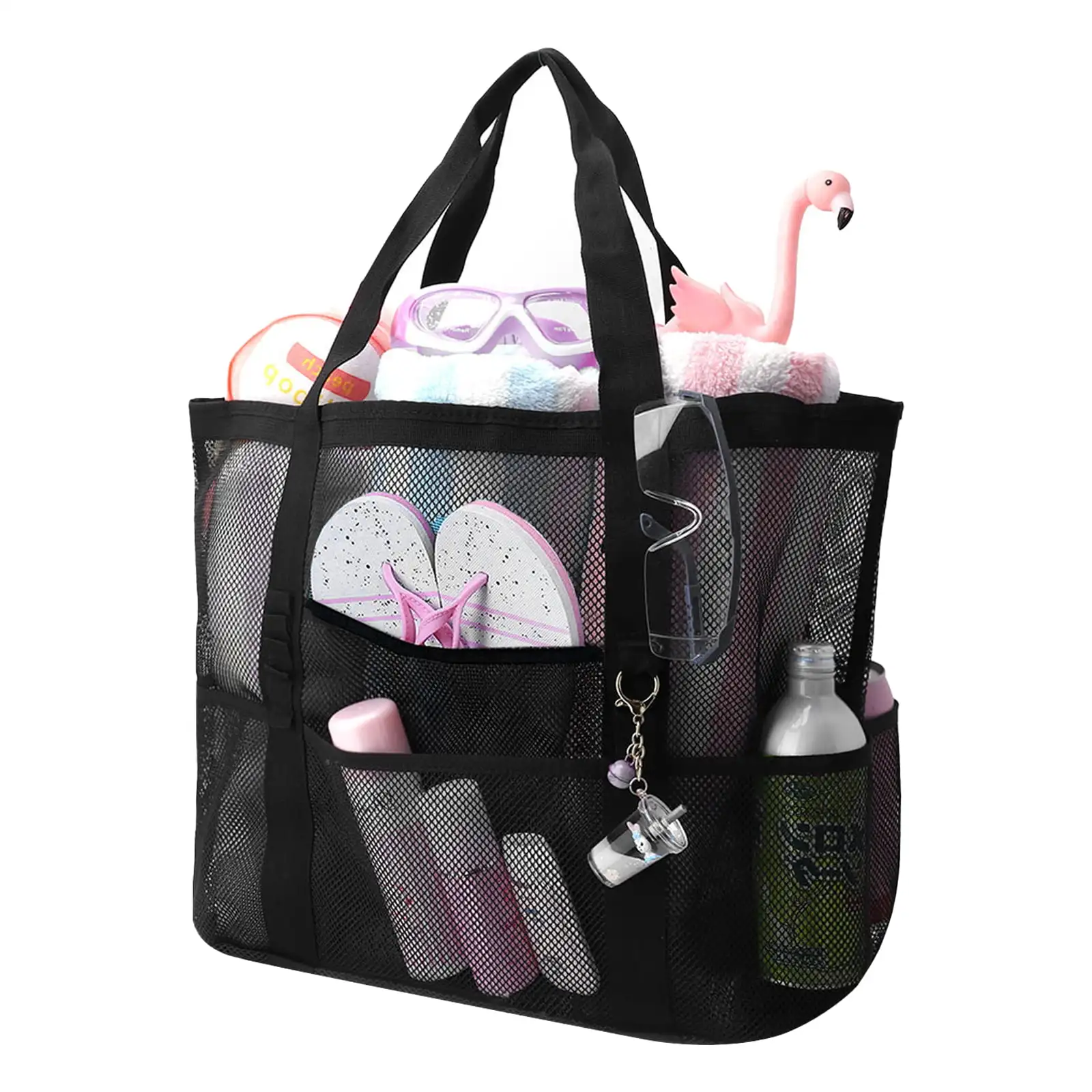 Extra Large Lightweight Mesh Swimming Travel Beach Tote Bag for Womens Outdoor Shoulder Handbag With 9 Pockets