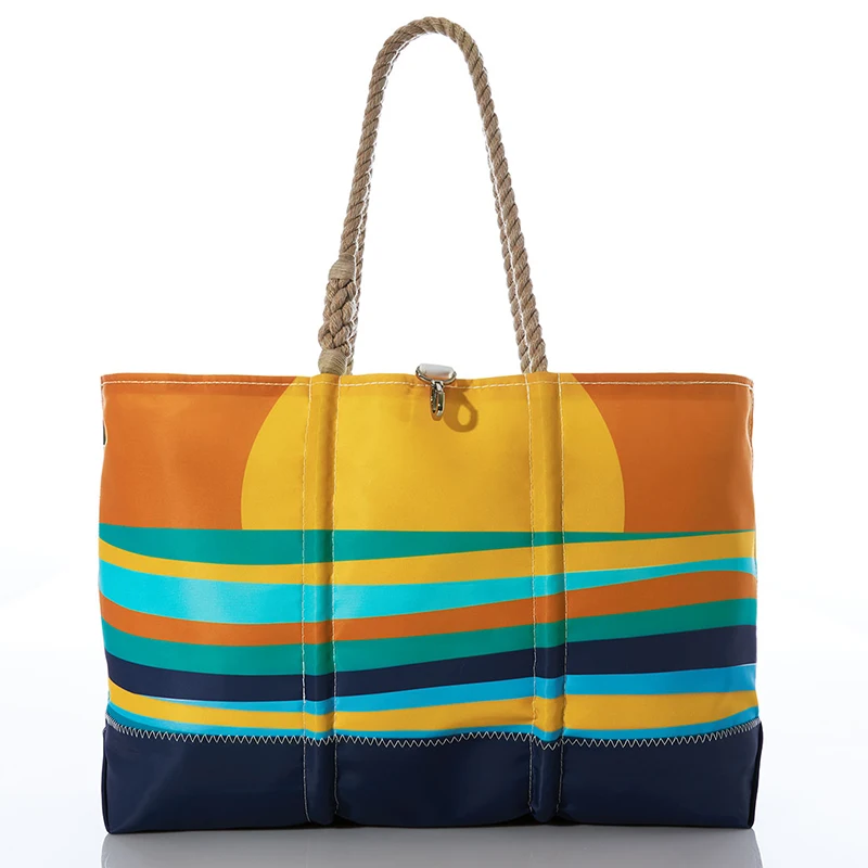 High Quality Large Capacity Canvas Tote Cotton Sunrise Stripe Beach Tote Bag With Design
