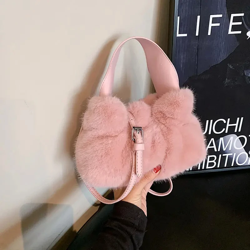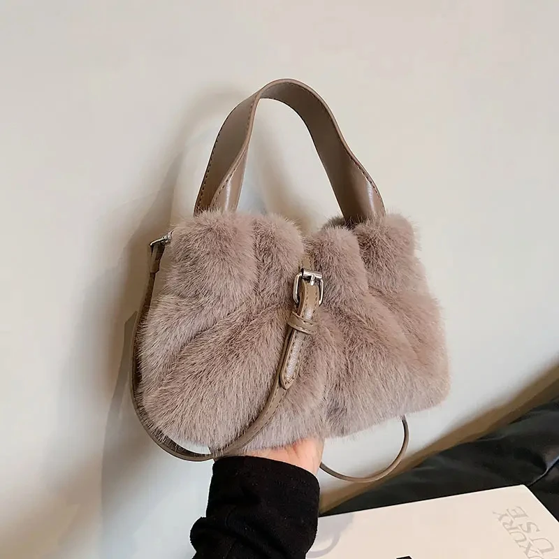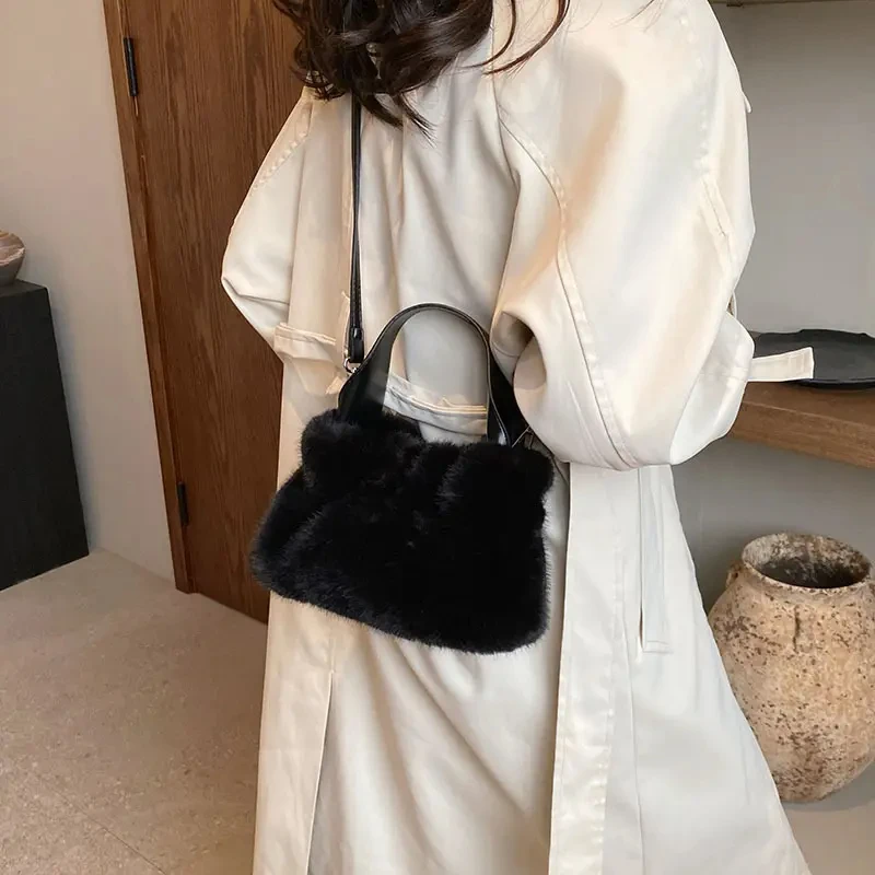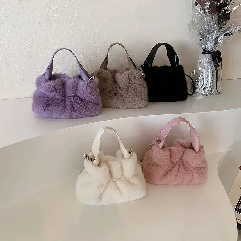 Bags for Women 2023 Autumn New Plush Bags Cute Western Style Wrinkled Handbags Fashionable Furry Shoulder Crossbody Bags