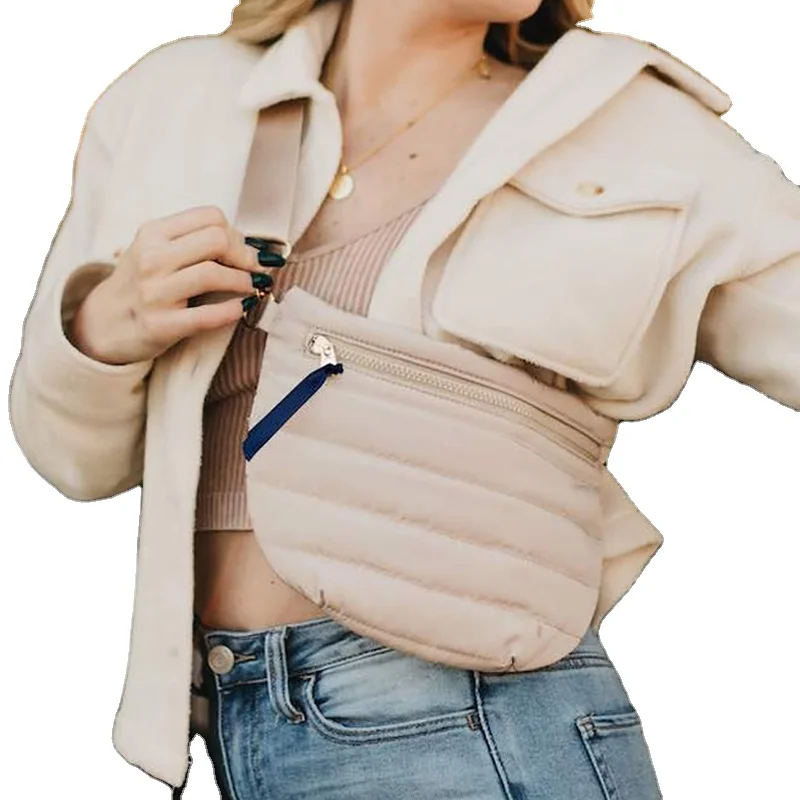 Casual Quilted Messenger Crossbody Bag With Zipper Women Shoulder Sling Waist Hip Belt Bags Puffer Fanny Pack