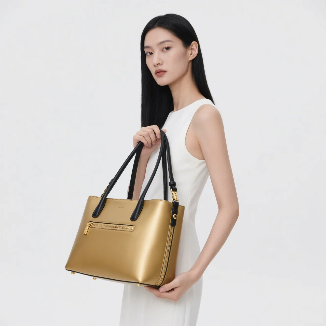 Elegant Fashionable Woman Leather Crossbody Shoulder Bag Casual Tote with Zipper Closure Solid Color Pattern