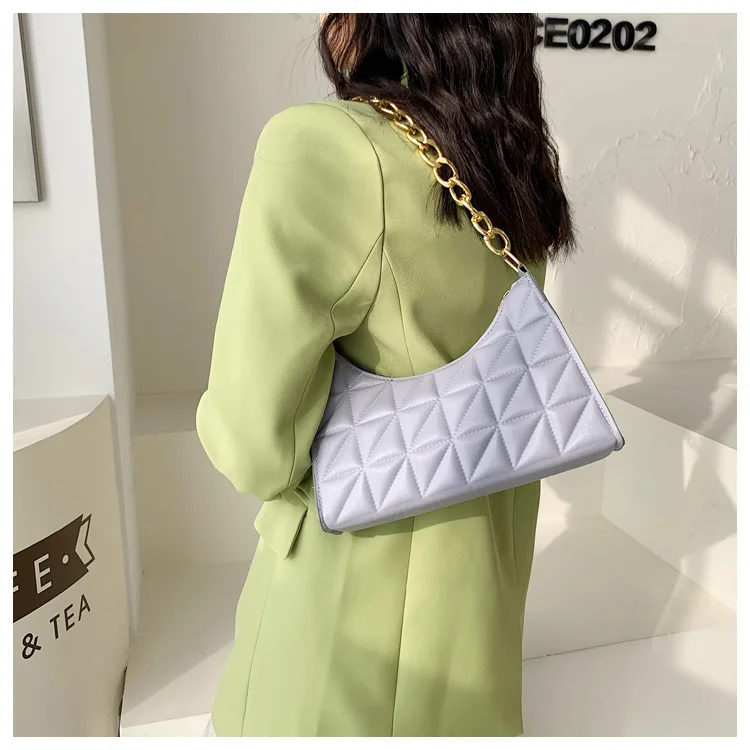 Fashion Diamond Niche Chain Casual Pu Leather Tote Bag Purses and Handbags for Ladies