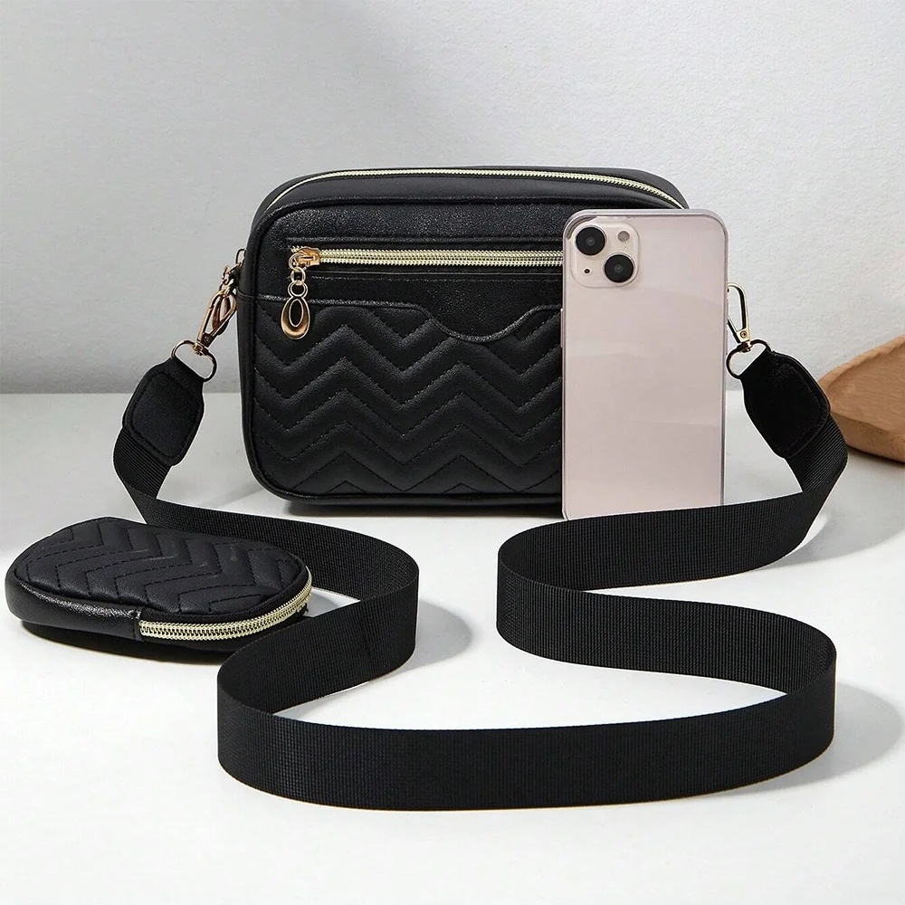 Fashion Ladies Embroidered Shoulder Bag Mini Chain Strap Handbag Camera Crossbody Phone Sling Bag with Coin Purse Pouch