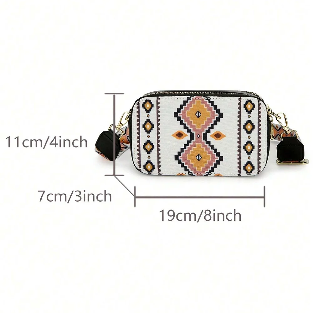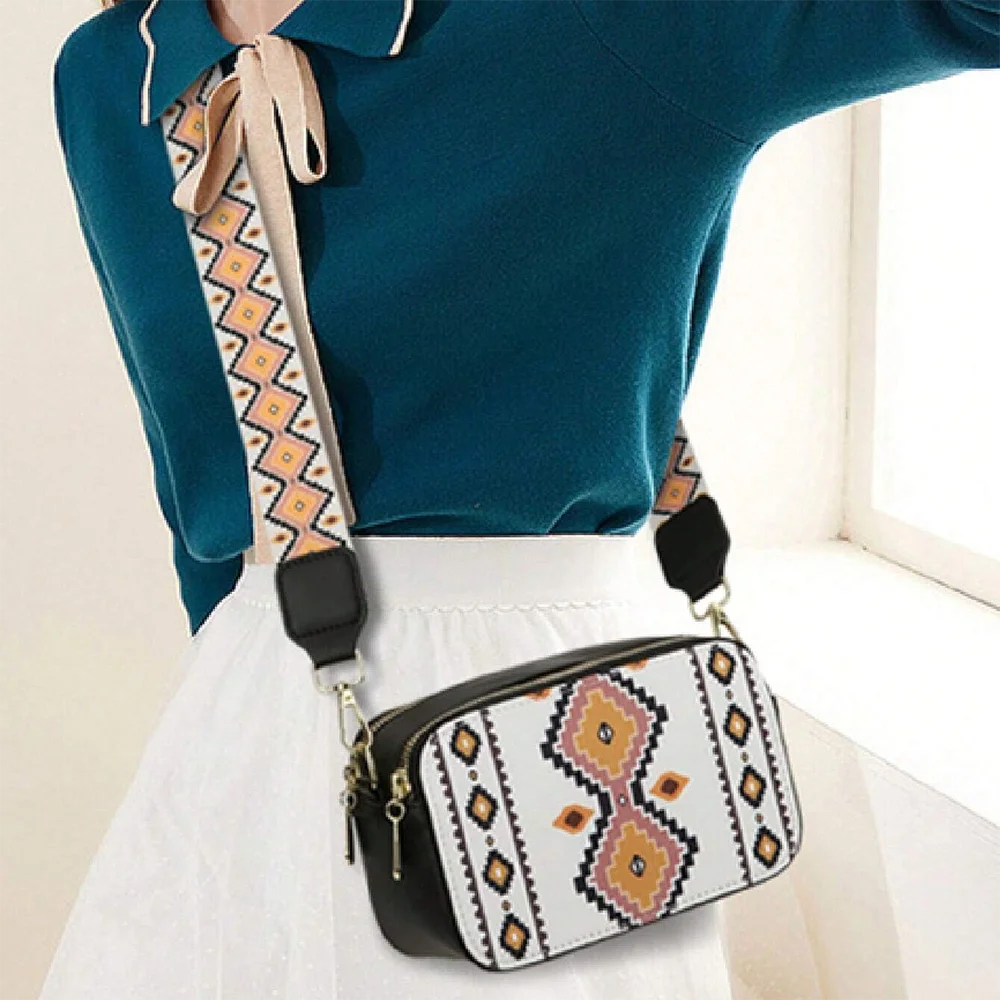 Fashion Vintage Wide Strap Shoulder Bag Women Ladies PU Leather Camera Crossbody Sling Purse Daily Aztec Bag