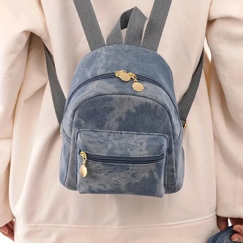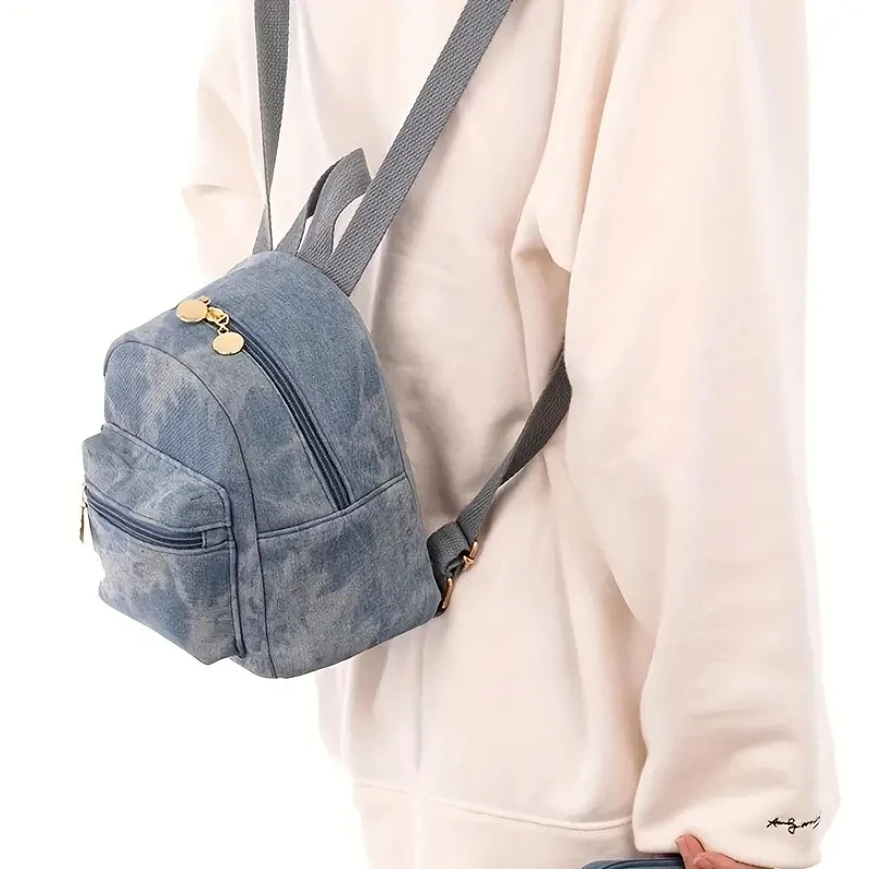 Fashion Women Ladies Daily Travel Mini Daypack Trendy Luxury Girls Outdoor Shopping Denim Backpack