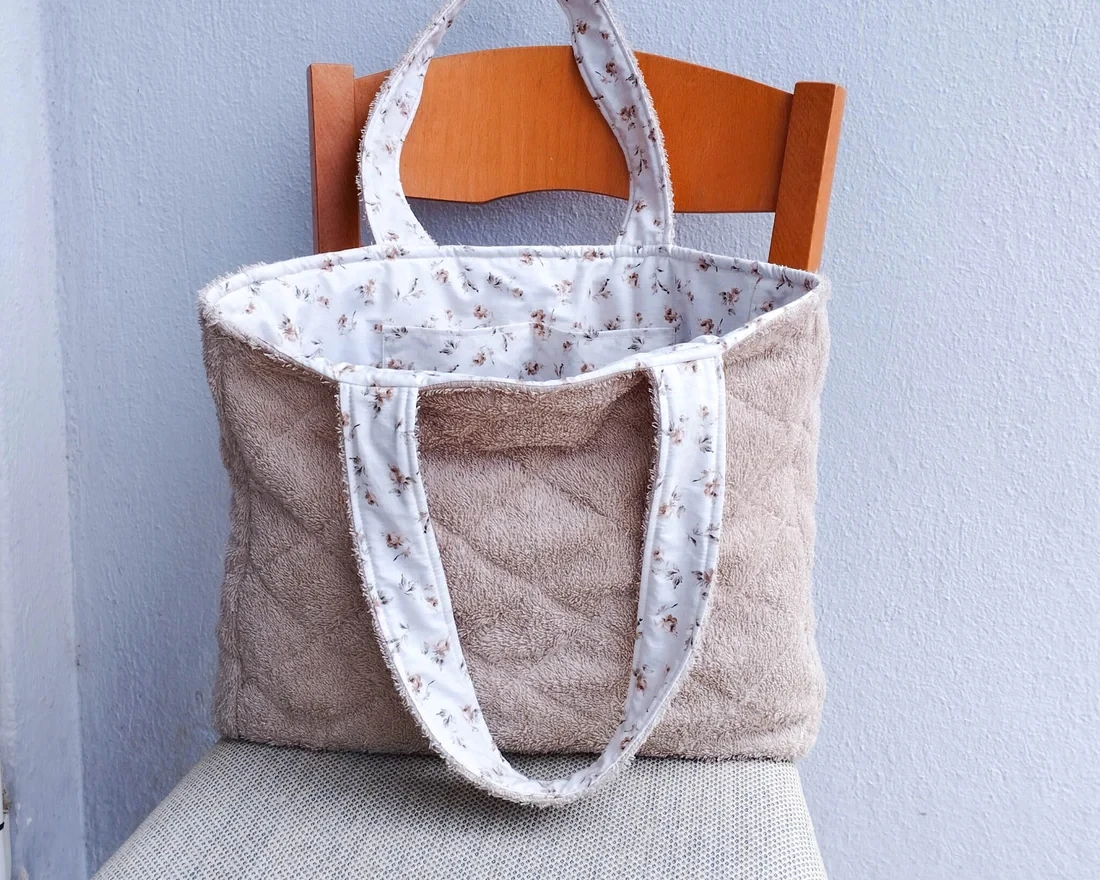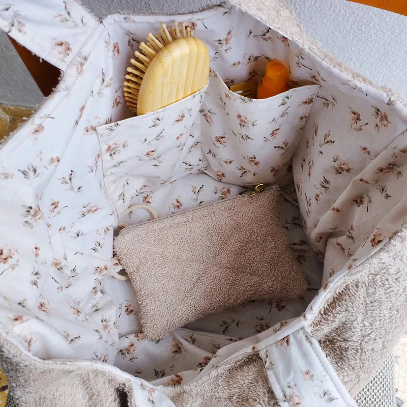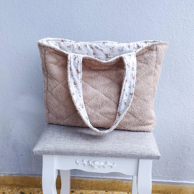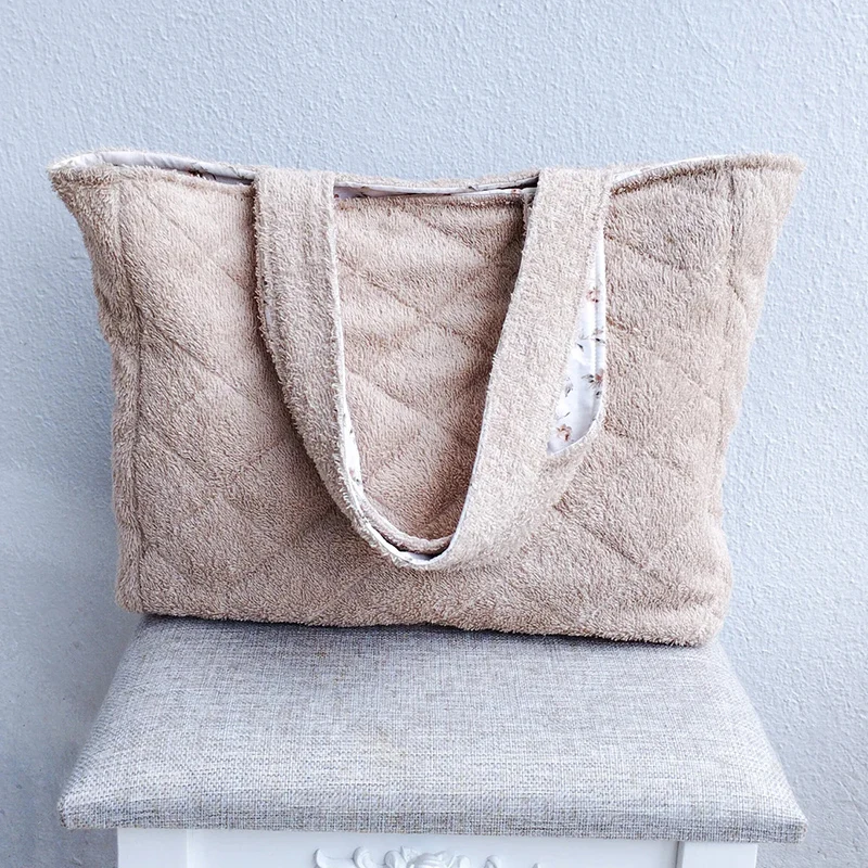Large Capacity Women Quilted Flowers Terry Toweling Shoulder Handbags Terry Cloth Beach Tote Bag