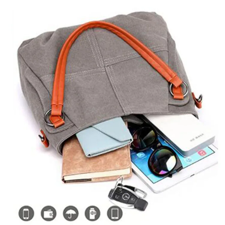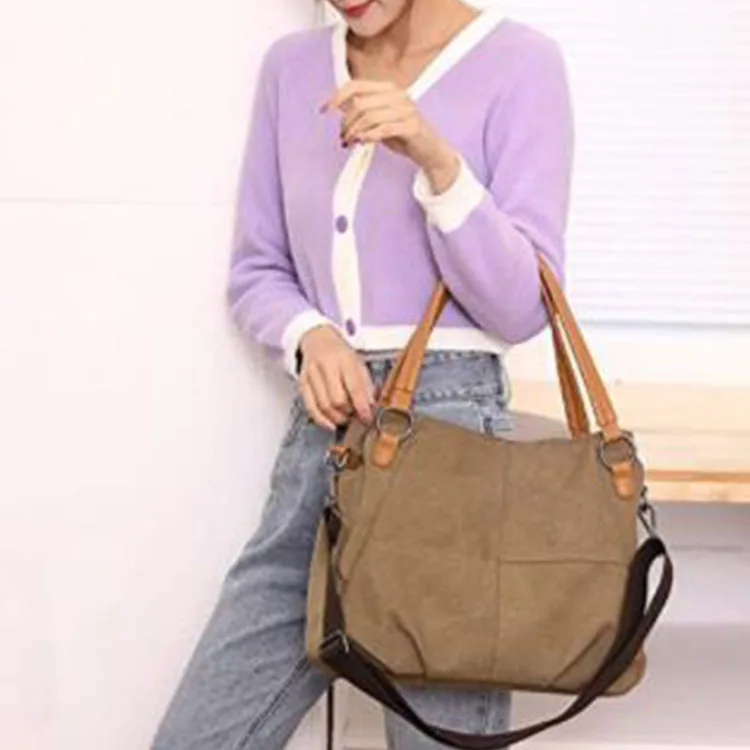Large Heavy Duty Shopping Leather Handle Casual Women Daily Canvas Crossbody Tote Bags