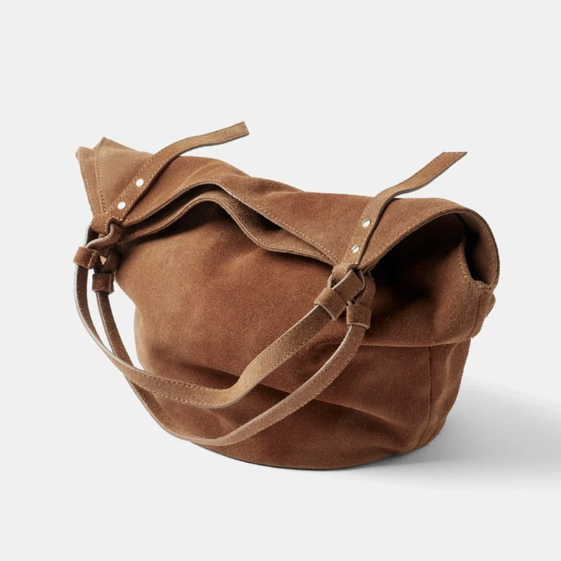 New Design Women’s Handbag Suede Shoulder Tote Bags Vintage Wear-resistant Retro Ladies Suede Bucket Bag