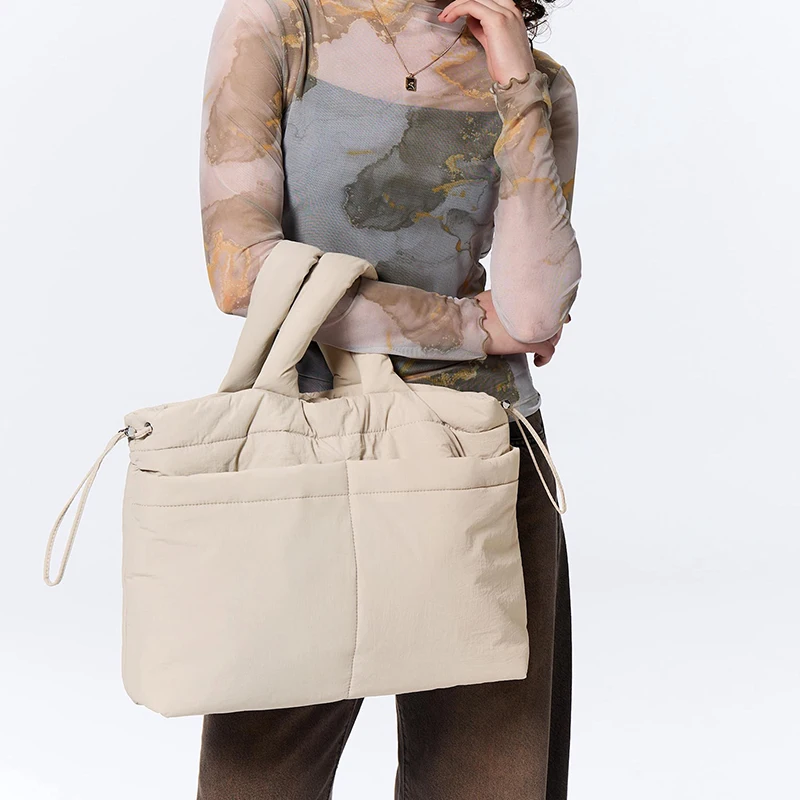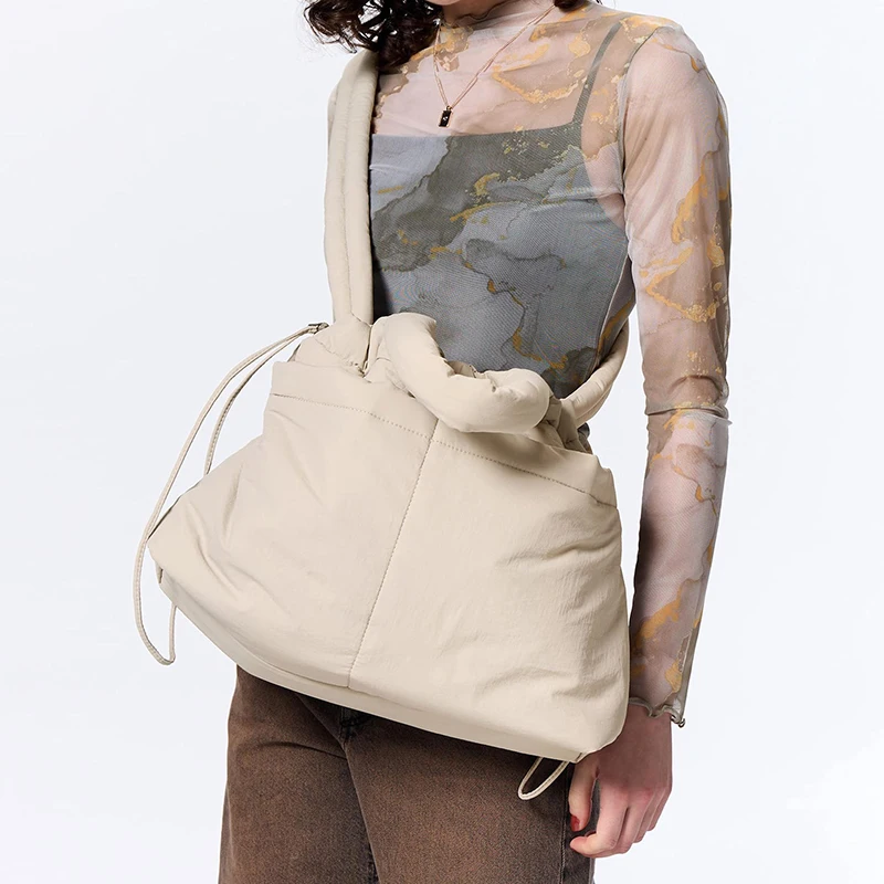 Outdoor Travel Puffer Tote Bag Quilted Puffy Crossbody Sling Handbag Soft Puff Drawstring Shoulder Bag for Ladies