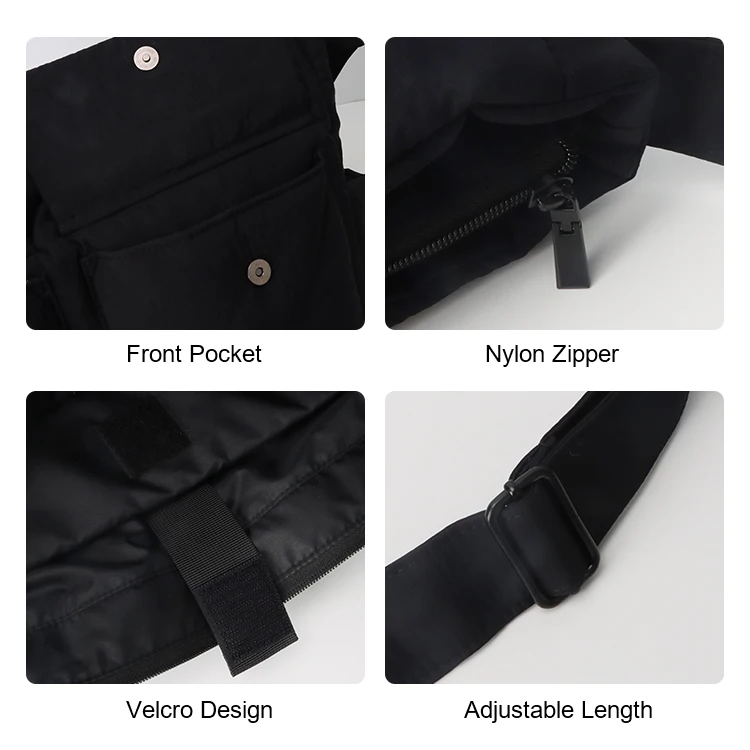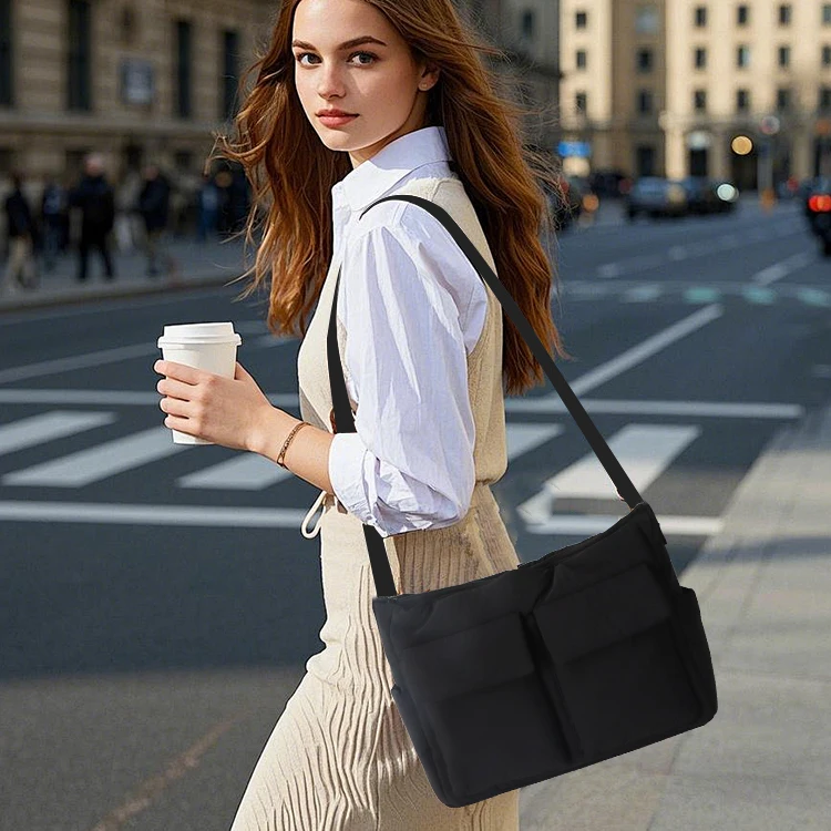 Quilted Nylon Puffer Tote Bag for Women Fashionable Crossbody Puffy Handbag with Zipper Closure and Polyester Lining