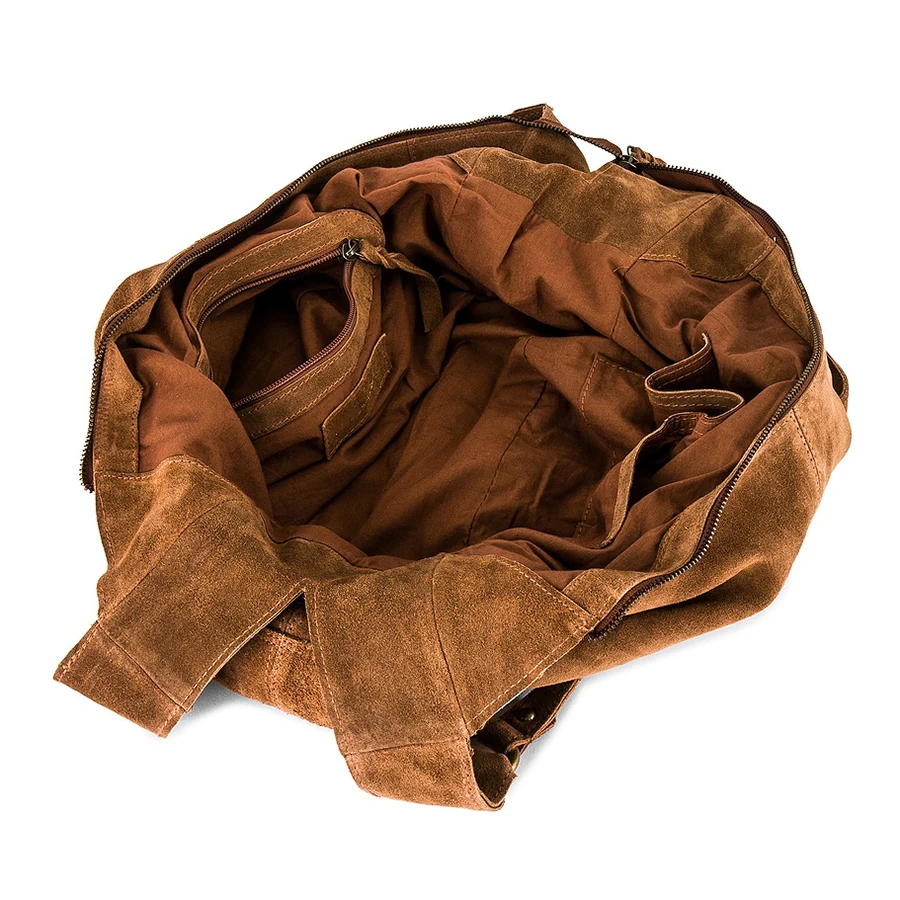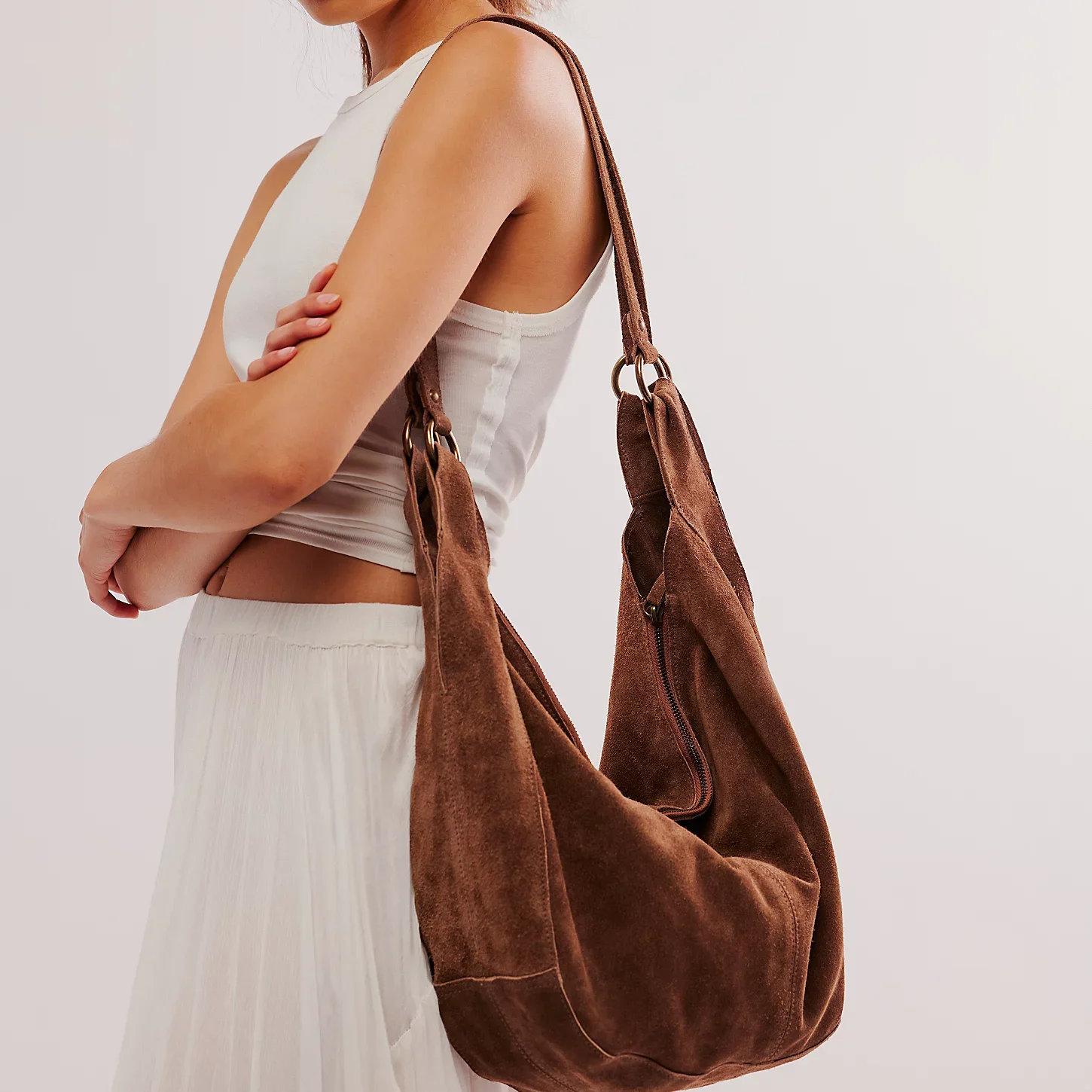 Vintage Women’s Suede Leather Hobo Shoulder Crossbody Tote Bag Large Capacity Retro Fashion Chains Decoration Zipper Closure
