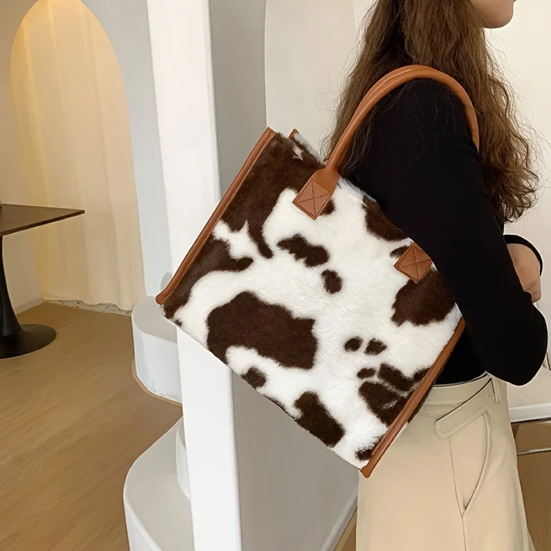 Vintage Y2K Fluffy Tote Handbag Soft Faux Fur Stylish Ladies Women Daily Fashion Plush Furry Shoulder Bags