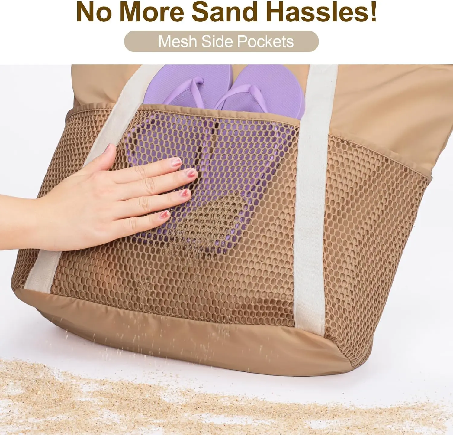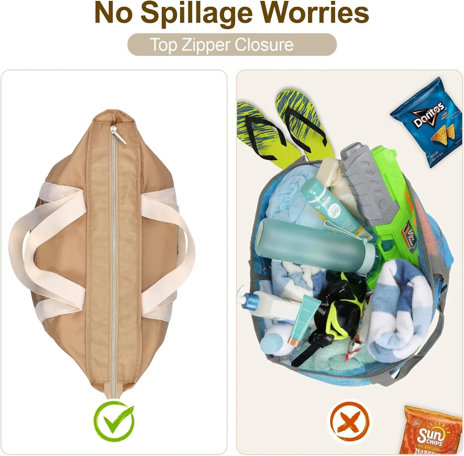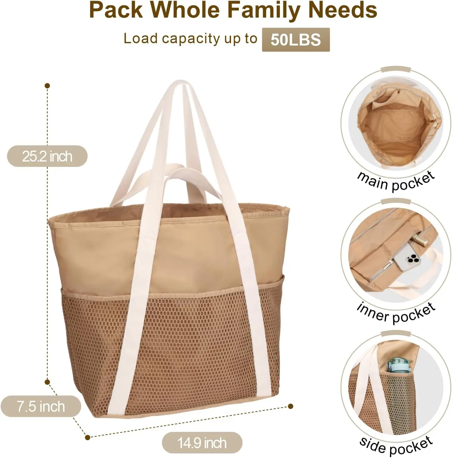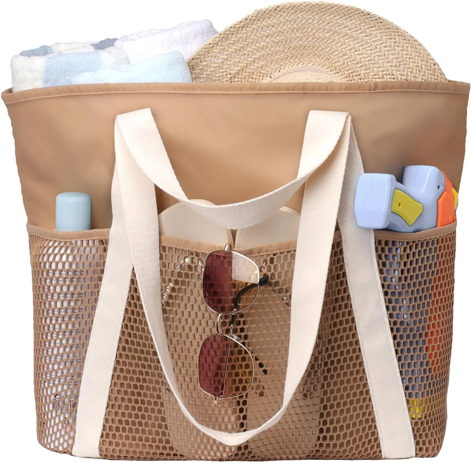 Waterproof Beach Bag with Zipper 8 Pockets Beach Tote Bag for Women Carry on Tote Bag