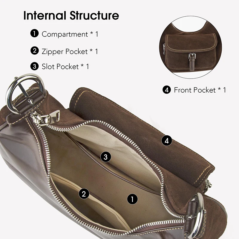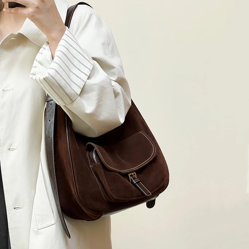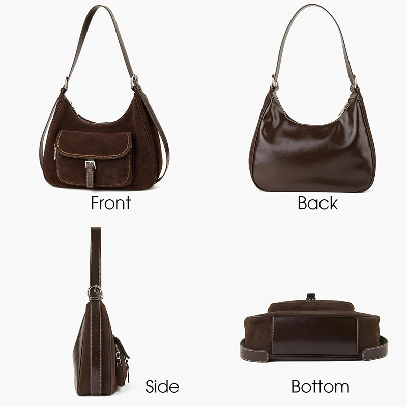 Women’s Casual Design Crescent Hobo Handbags Cow Suede Underarm Shoulder Purse Crossbody Bags Portable Features